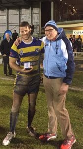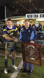 Man of the match Rhys Walpole acknowledged by NSWPRL Patron